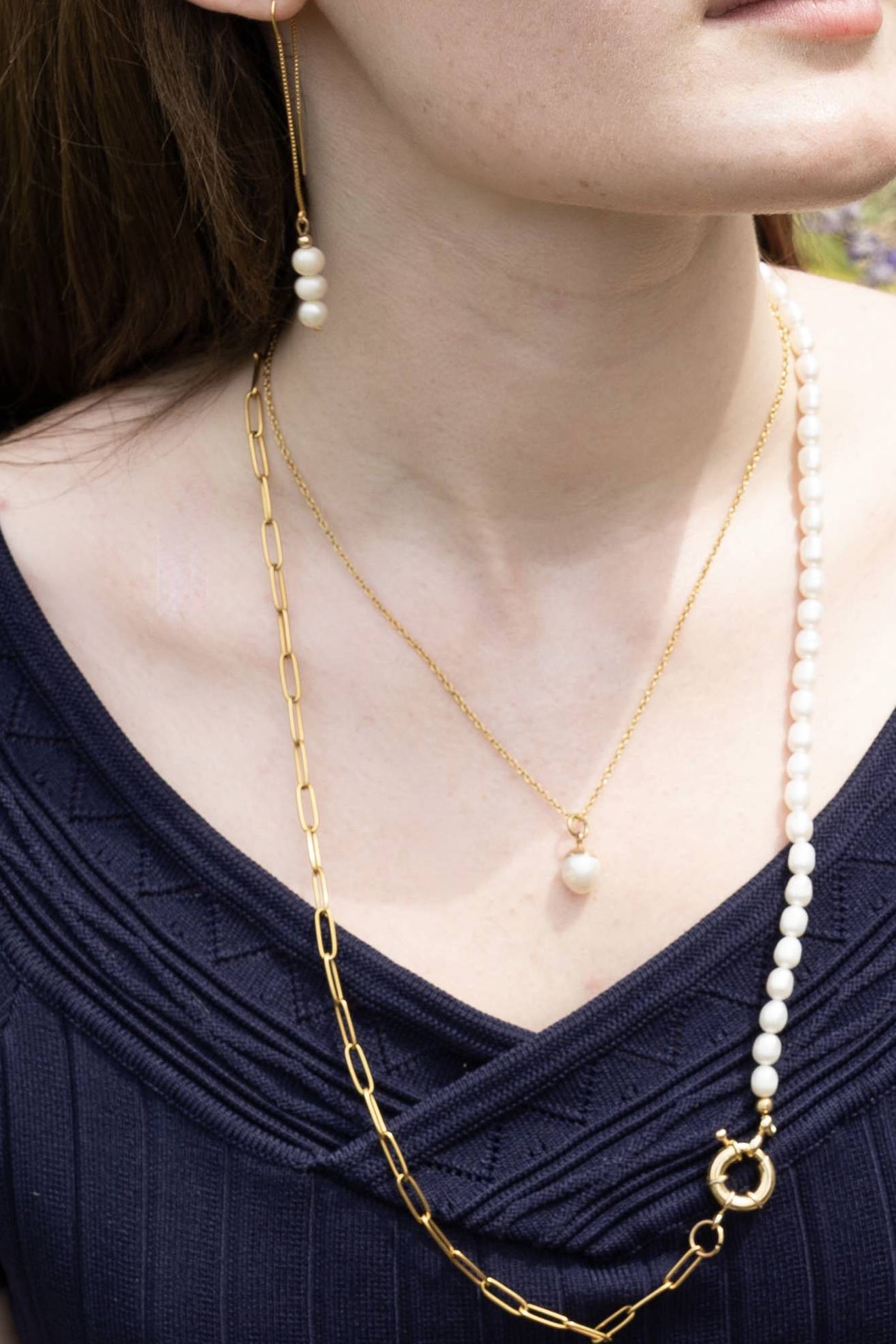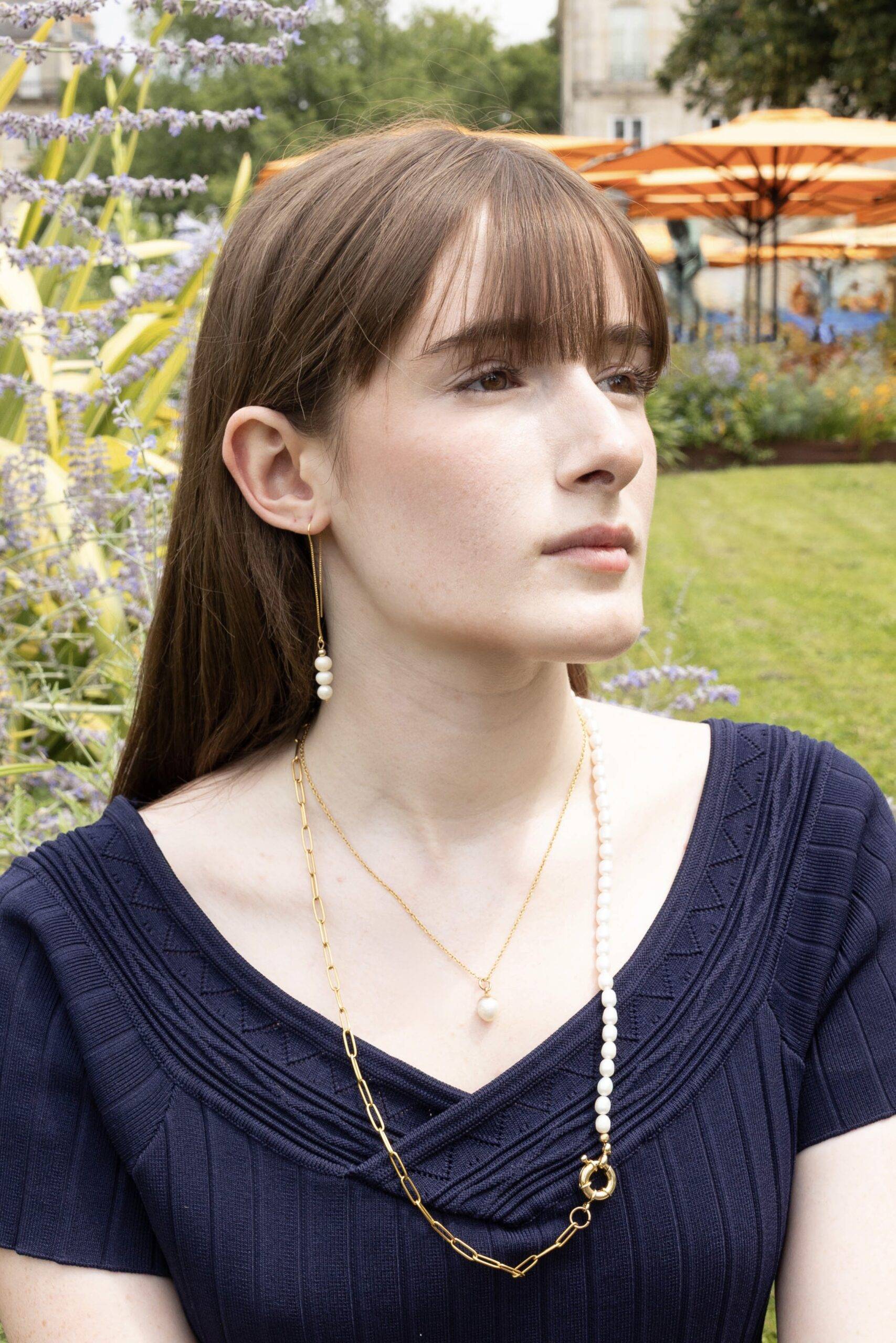 Composition : gold filled et perles d'eau douce en nacre, perle dorée à l'or fin 24 carats.