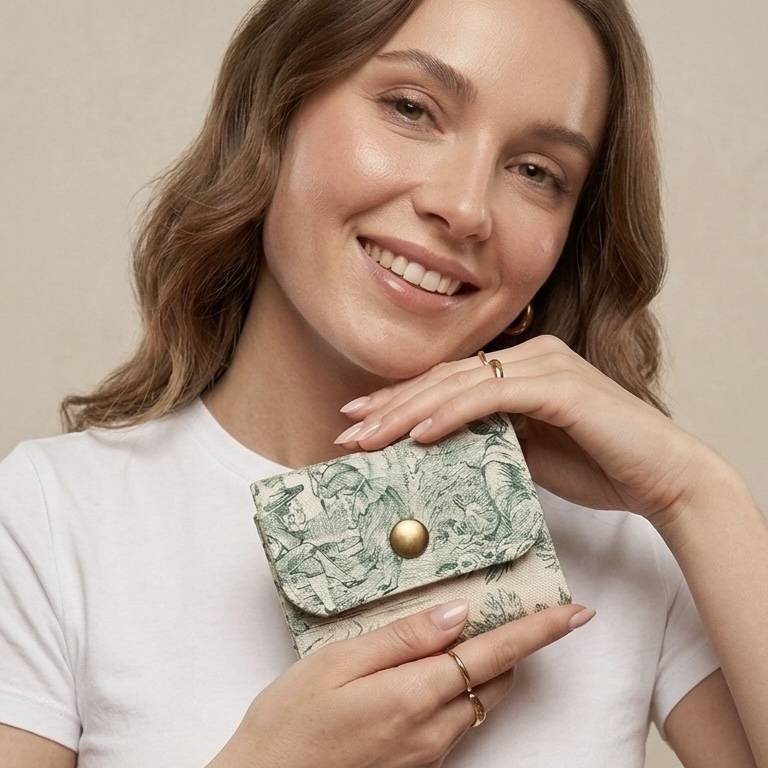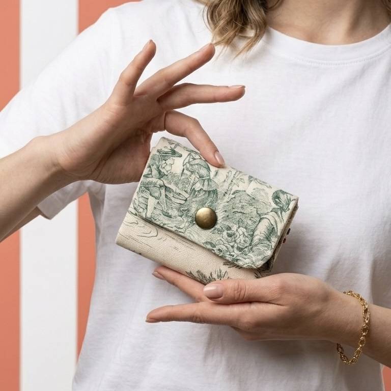 Mini Portefeuille Toile de Jouy verte